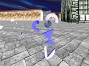 We commonly use keyframe animation to move objects in a CAVE application. For example, to animate the flying letters referred to in the description of the "Multi Mega Book," keyframes were set to determine the path of the letters through the city. As the letters move along this path, a simple behavior routine makes them also spin and orbit each other.