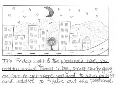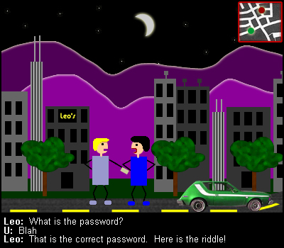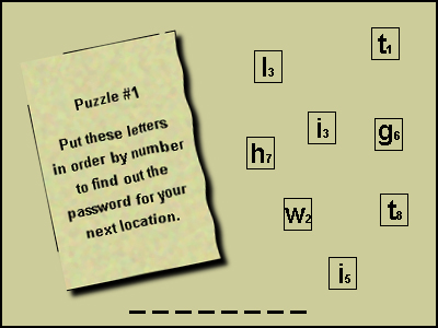 In the beginning of the game you are given a password and a clue as to where you are supposed to go first.
