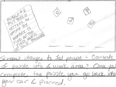 Once the player completes the puzzle, the screen goes back to 3rd. person point of view with the player driving to the next checkpoint.